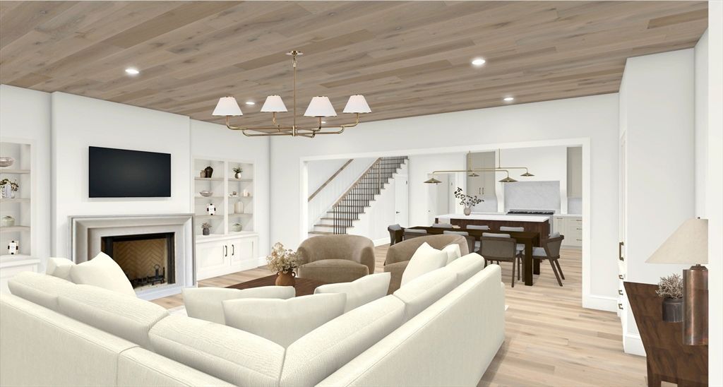 Living Room: Flooring - Hardwood, Deck - Exterior, Open Floorplan, Recessed Lighting, Crown Molding